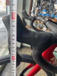 展示中のバイクは、コラムのスペーサーを最大に入れており(5cm)、かなり高めのハンドル位置となっております。